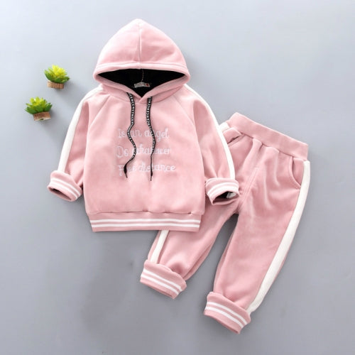 Autumn Winter Baby Casual Letter Hooded Thicken Double Sided Velvet Sports Set, Size:80cm(Pink)