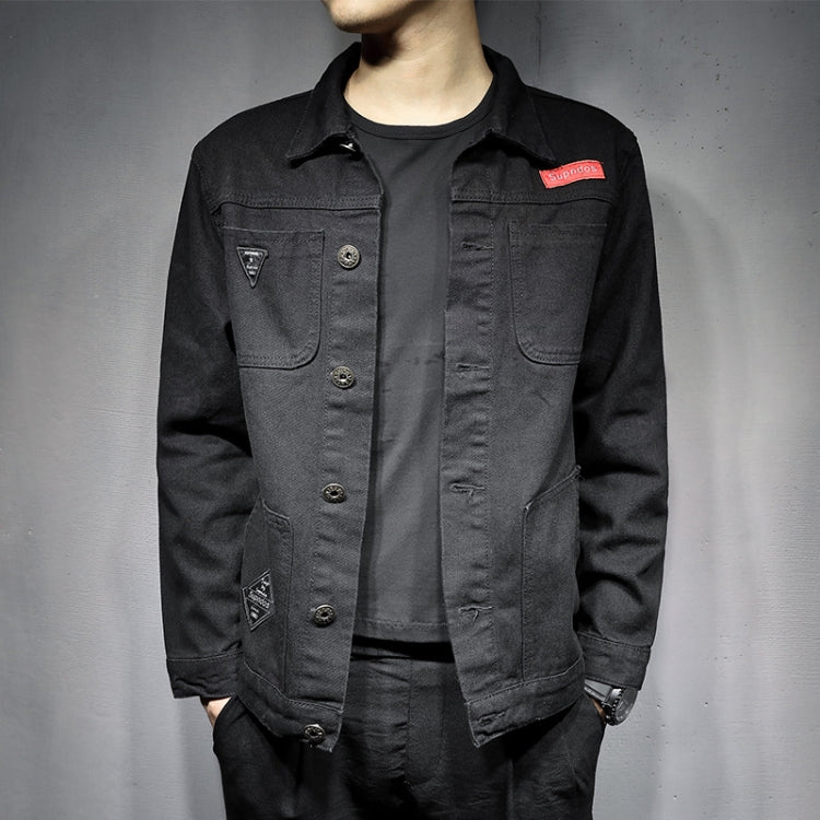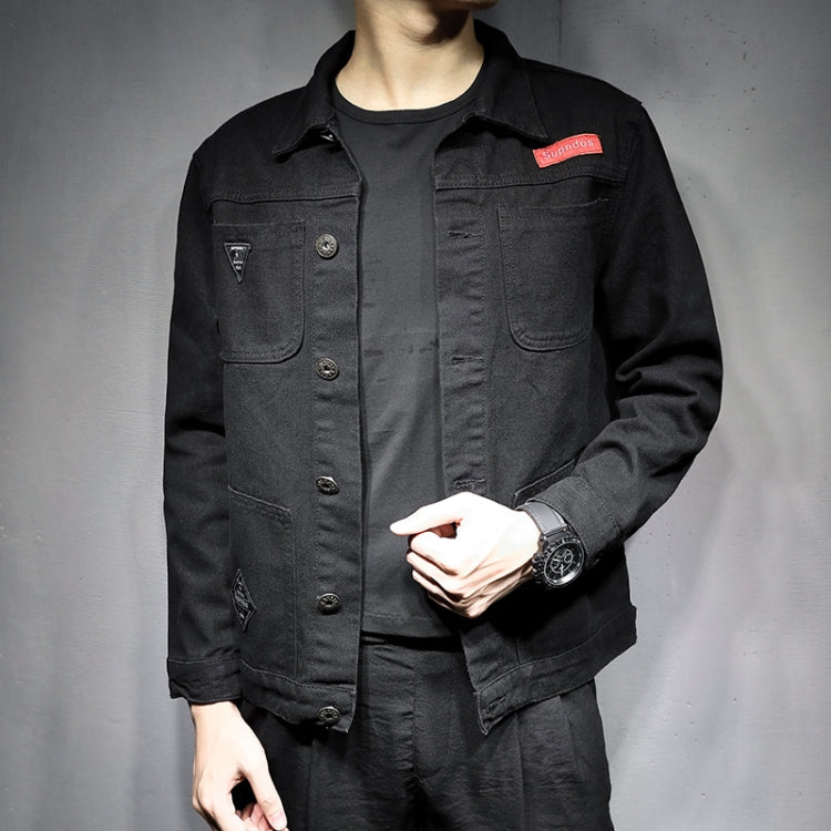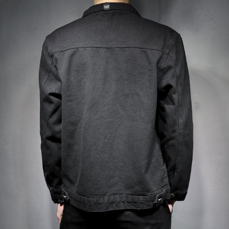 Casual Black Slim Wild Spring and Autumn Tooling Denim Jacket, Size: XL(Black)