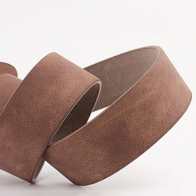 Casual Needleless Round Buckle Wide PU Leather Belt for Women, Belt Length:103cm(khaki)