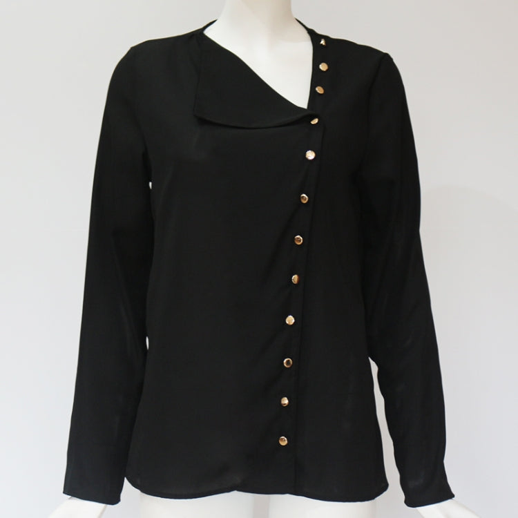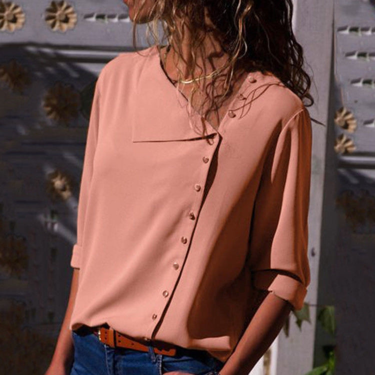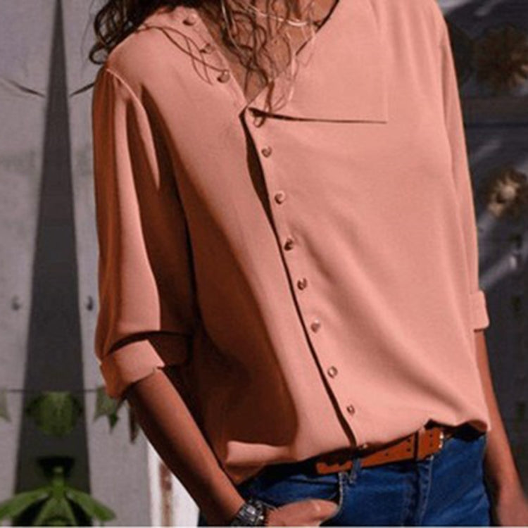 Chiffon Blouse With Long Sleeves And Irregular Diagonal Collar, Size:M(Pink)