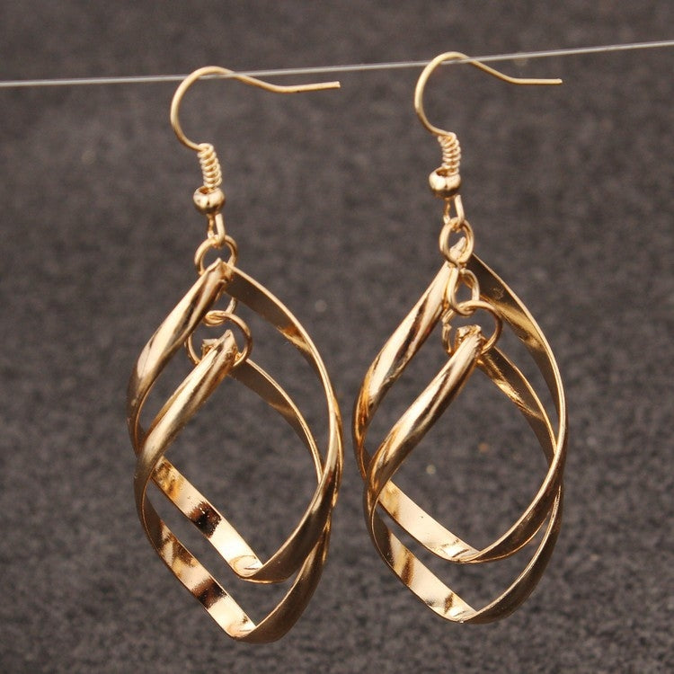 Classic Super Shiny Alloy Multilayer Twisted Ladies earrings(Gold)