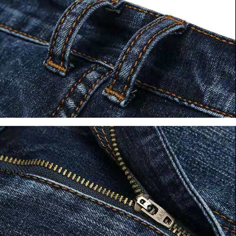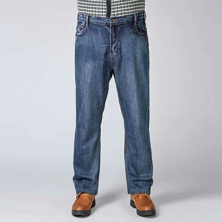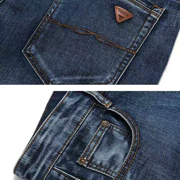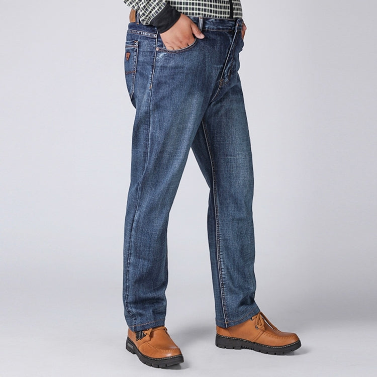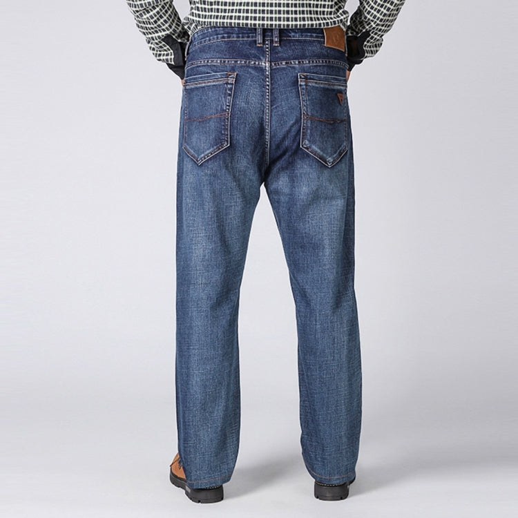 Comfortable Casual Straight Loose Jeans Trousers Stretch Thick Section (Navy Blue_36)