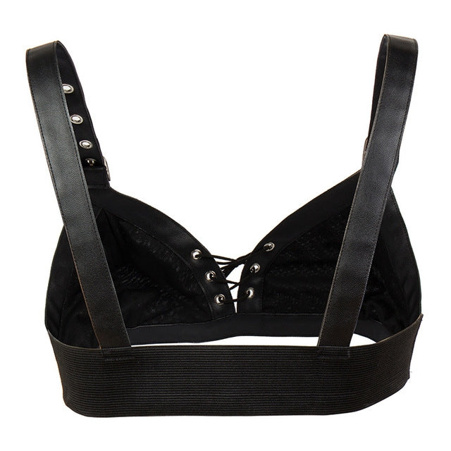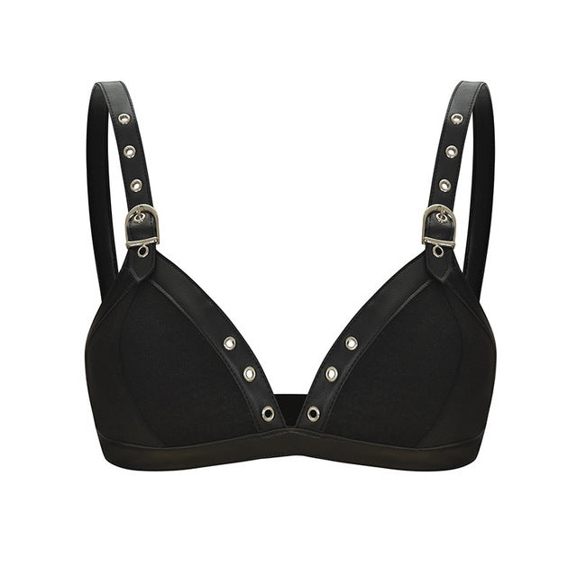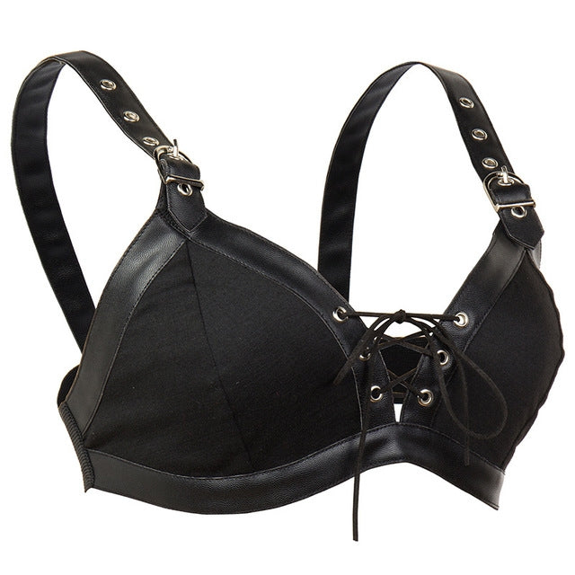 Corset Bra Women Faux Leather Punk Bralette Punk Rave Clothing, Size:XXL(Black)