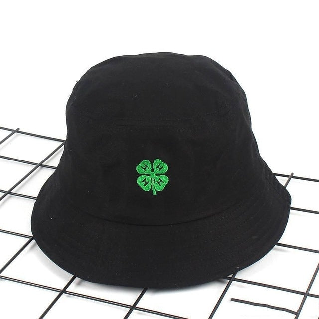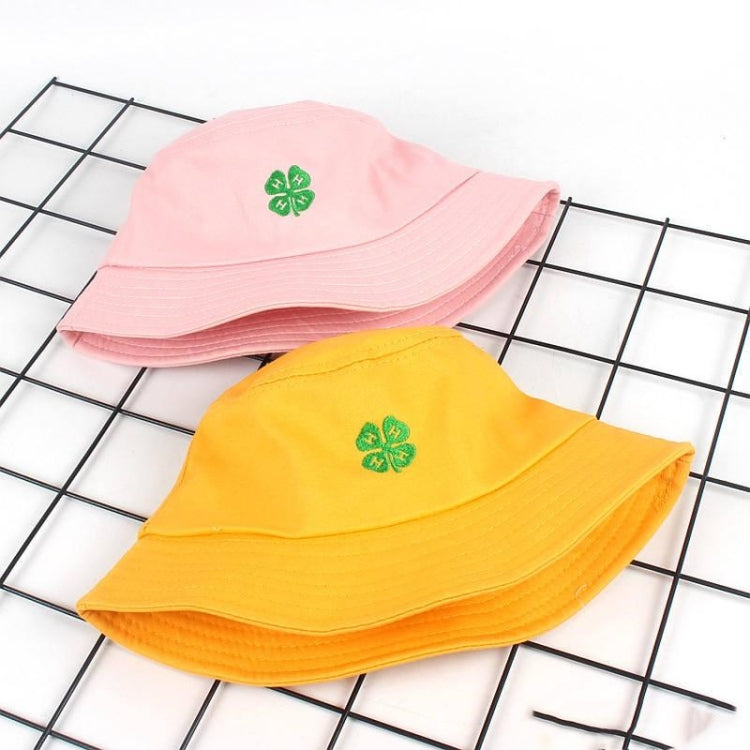 Cotton Embroidery Fisherman Hat Foldable Sun Cap, Size: 56-58cm(Four-Leaf Clover Black)