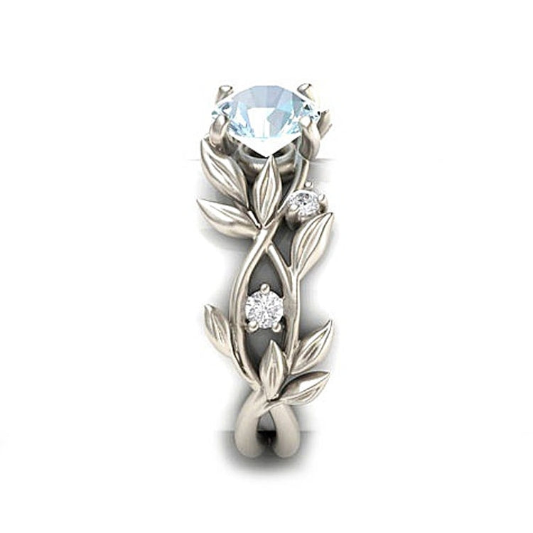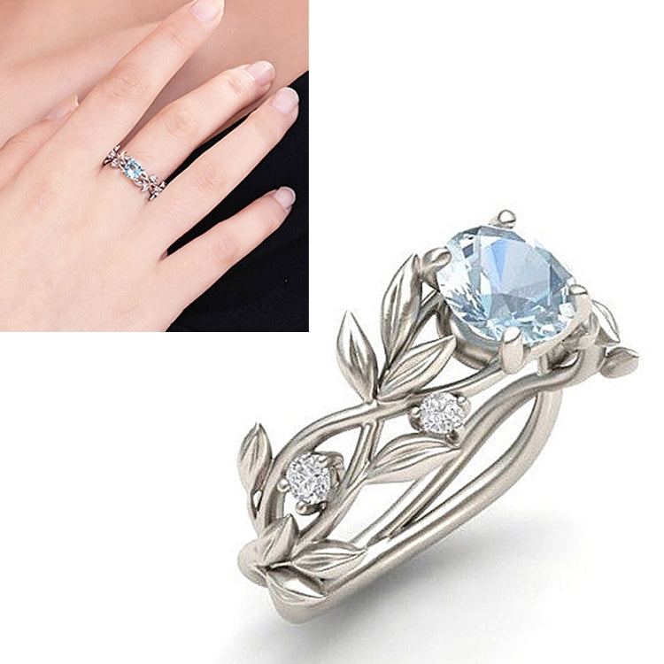 Crystal Vine Leaf Design Engagement Ring Fashion For Women Jewelry, Ring Size:7(Sky blue)