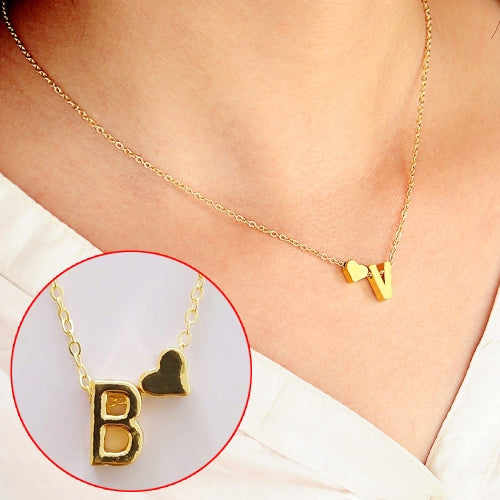 Fashion Tiny Dainty Heart Initial Necklace Personalized Letter B Name Necklace(Gold)