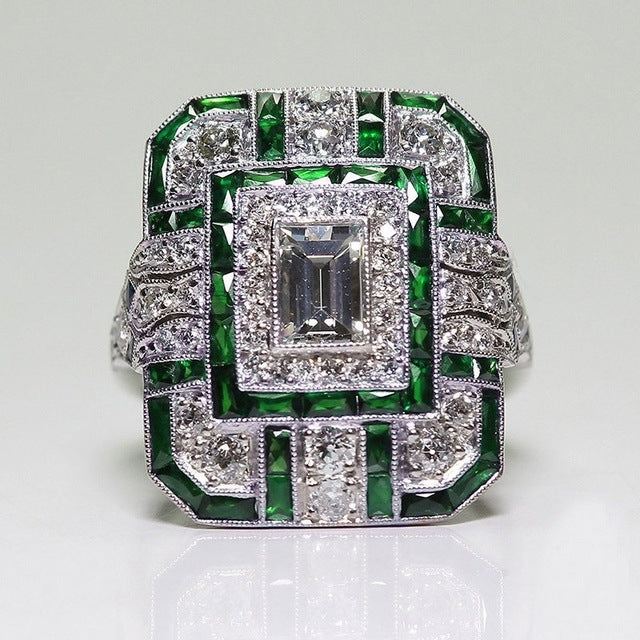 Luxury Square Women Crystal Zircon Engagement Ring, Ring Size:6(Green)