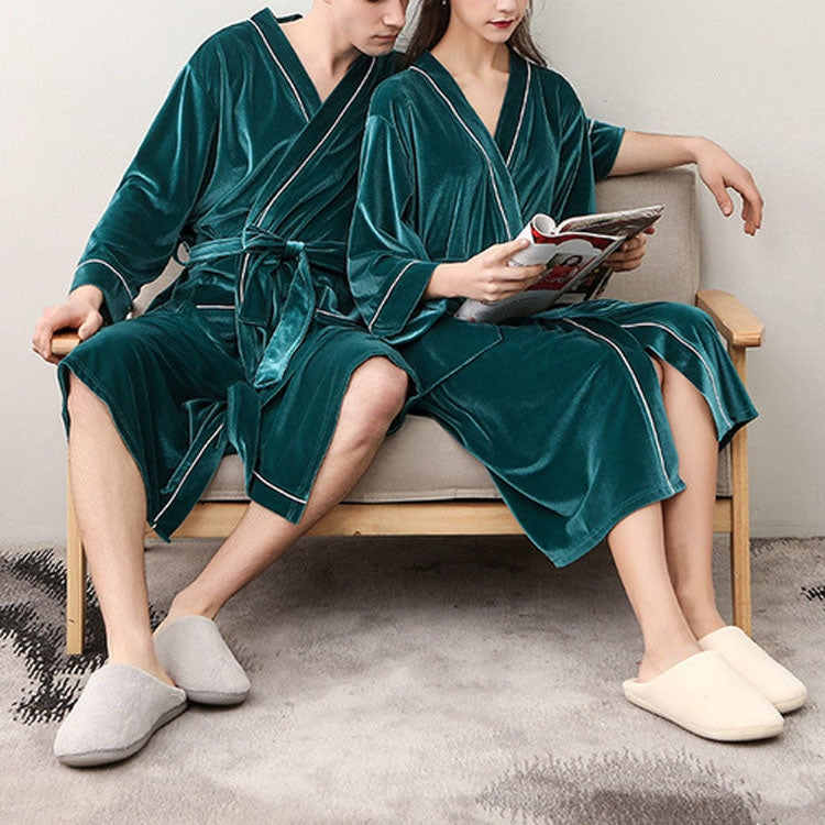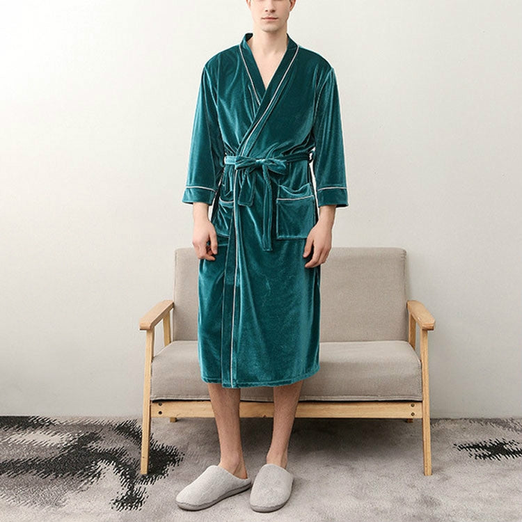 Male Home Couple Long Gold Velvet Bathrobe Robe, Size:XL(Dark green)