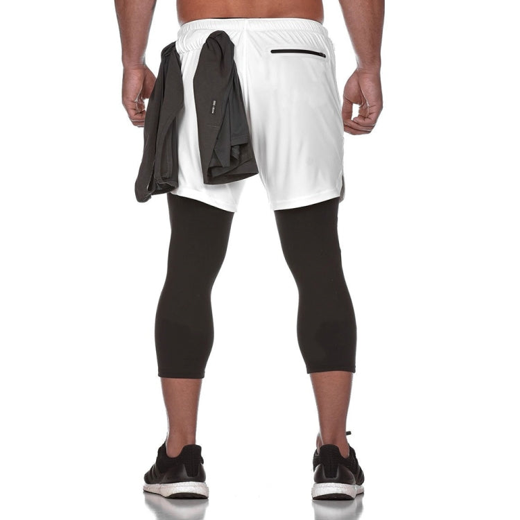 Men Running Shorts 2 in 1 Sport Leggings Male Double-layer Quick Dry Sports men Jogging Gym Shorts with Back Hanging, Size:XXL(White)