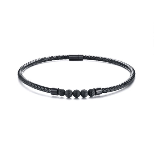 NC441 Stainless Steel Magnet Clasp Lava Stone Leather Collar Necklace(Circumference 44cm)
