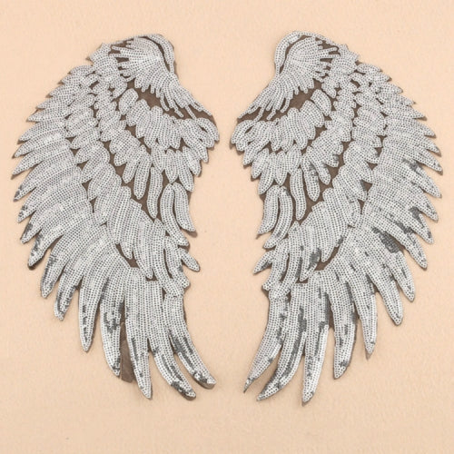 Silver A Pair Sequin Feather Wing Shape Clothing Patch Sticker DIY Clothing Accessories, Size:Large 33.5 x 32cm
