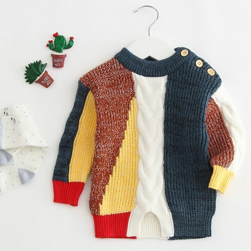 Autumn and Winter Children Clothing Multi-color Stitching Long-sleeved Knit Sweater, Height:73cm(Colors)