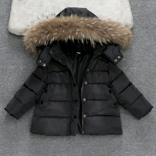 Winter Children Warm Down Jacket Fur Collar Coat with Detachable Hat, Height:120cm(Black)