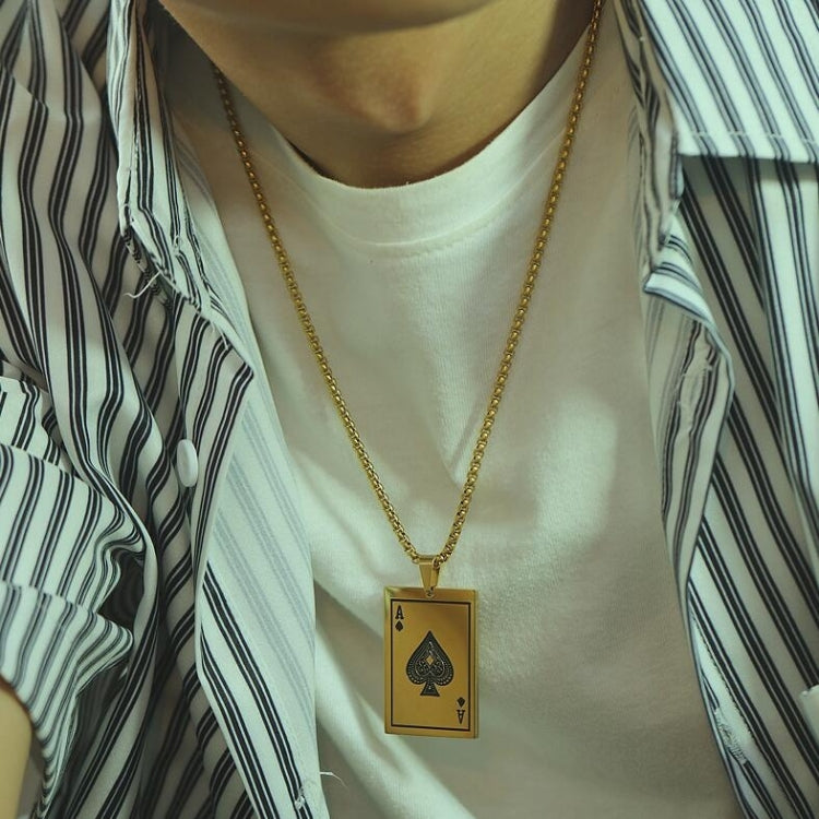 OPK 1670 All-match Titanium Steel Spade A Playing Card Pendant Personality Men Necklace, Color:Gold Pendant+Chain