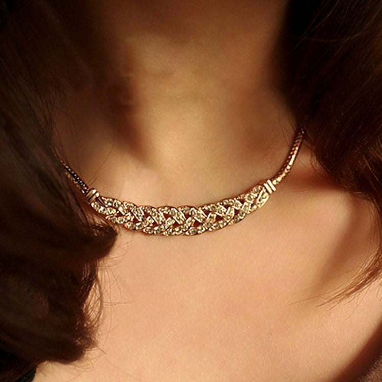 Retro Noble Wheat Short Necklace Ladies Full Drill Snake Bone Chain(Gold)