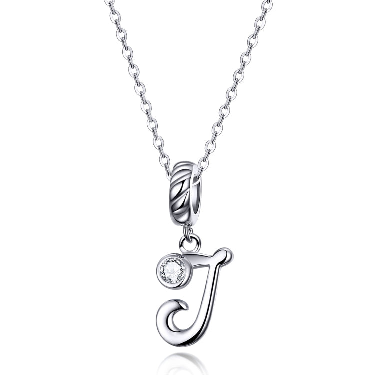 S925 Sterling Silver 26 English Letter Pendant DIY Bracelet Necklace Accessories, Style:J