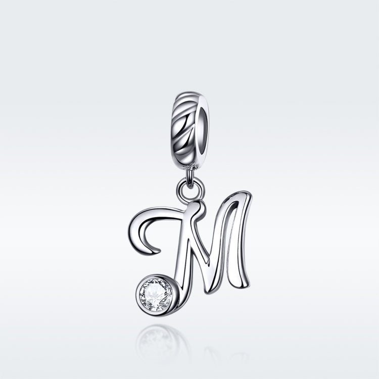 S925 Sterling Silver 26 English Letter Pendant DIY Bracelet Necklace Accessories, Style:M