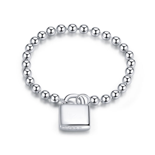 S925 Sterling Silver Simple Heart Lock Women Ring, Size:7