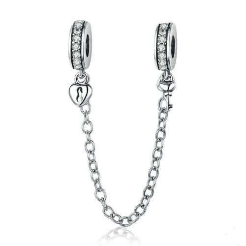 S925 Sterling Silver Stackable Heart-shaped Pendant Safety Chain