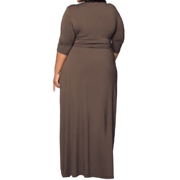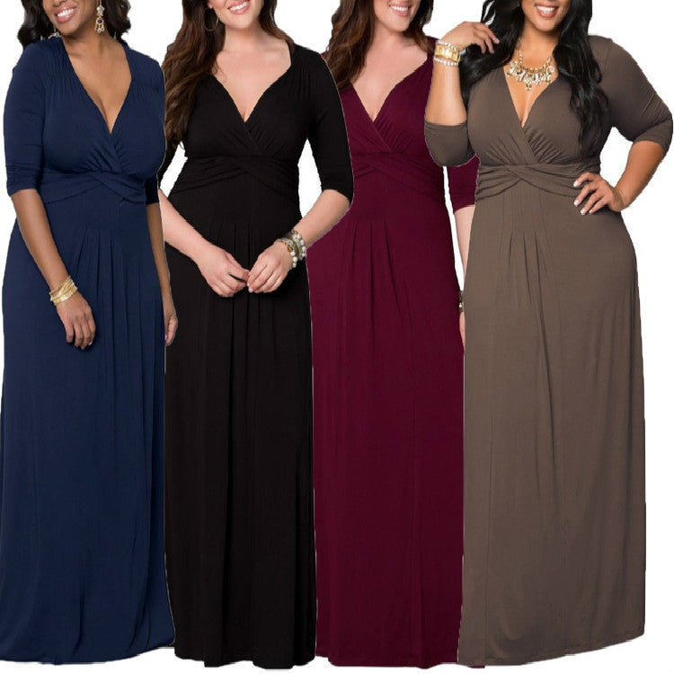 Sexy Deep V Half Sleeve Slim Fit Skirt Dress, Size:XXL(Wine Red )