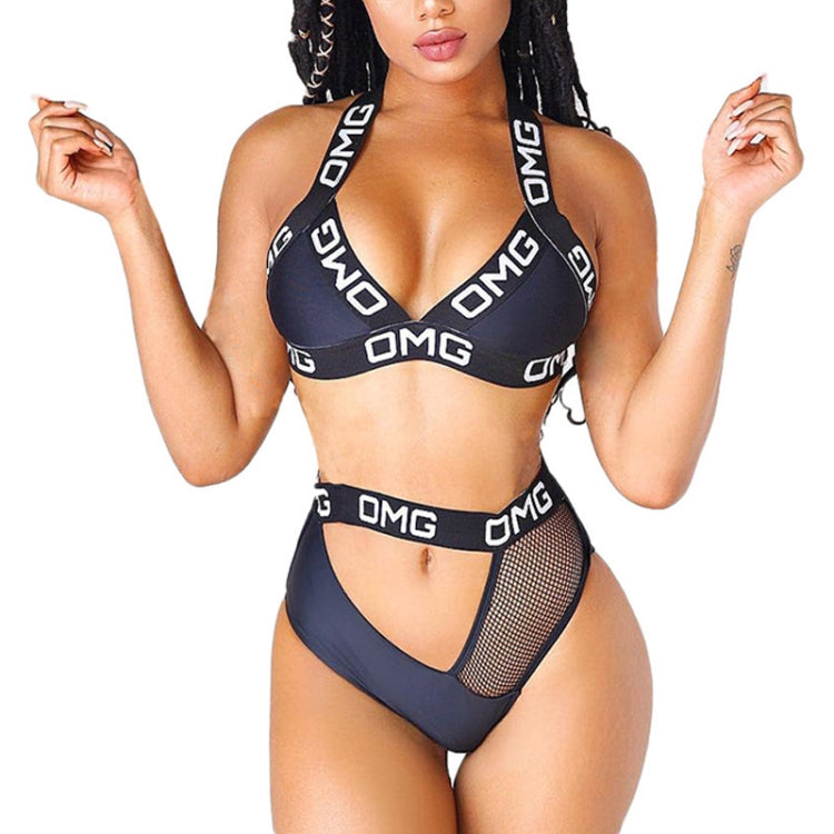 Sexy Letter Mesh Hollow Bikini Split Swimsuit, Size:M(White)