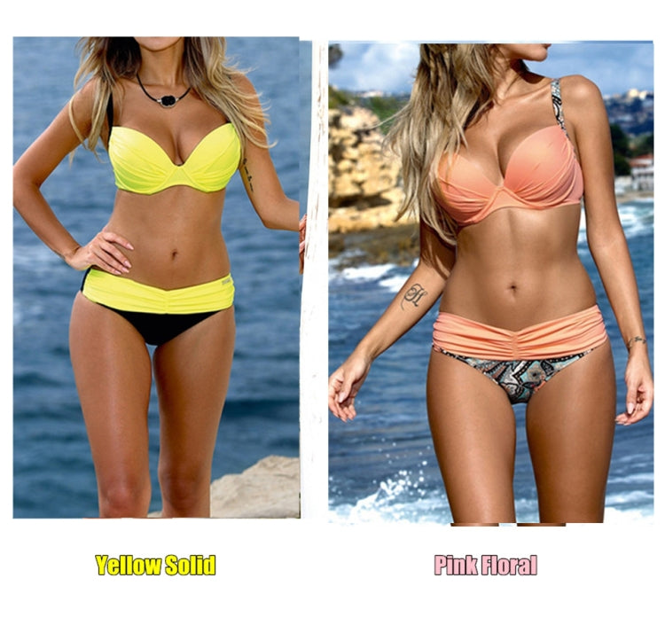 Sexy Push Up Female Beachwear Plaid Bikini, Size:M(Pink Flora)