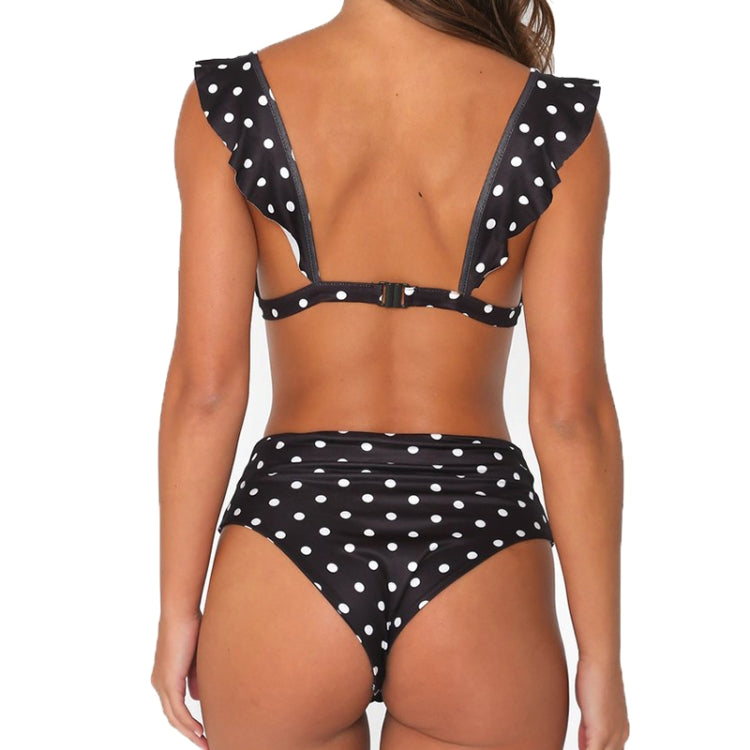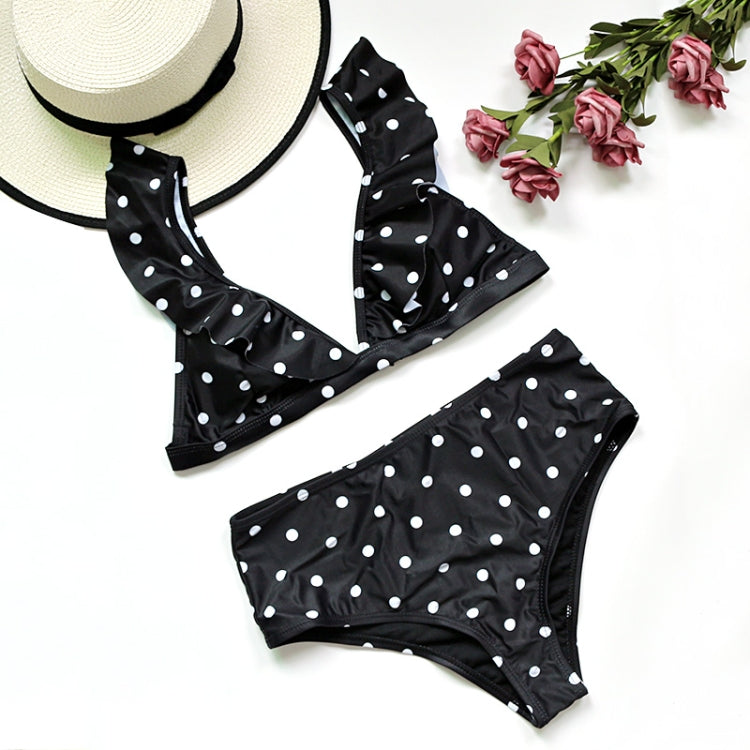 Sexy Retro Lovely V Neck Dot Ruffled Bathing Suit High Waist Swimsuit Bikini Set, Size:S(Black Bikini)