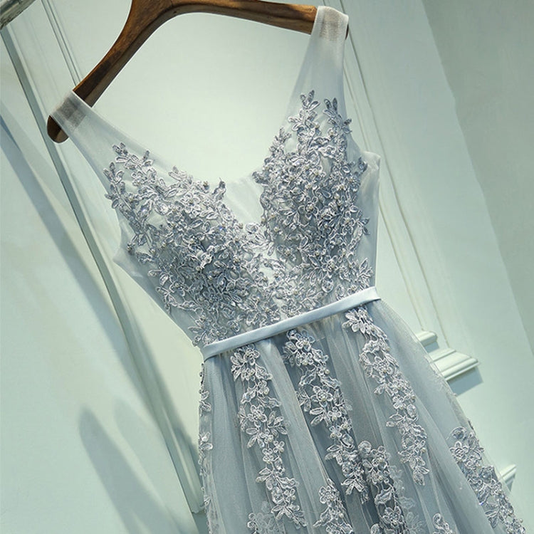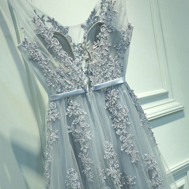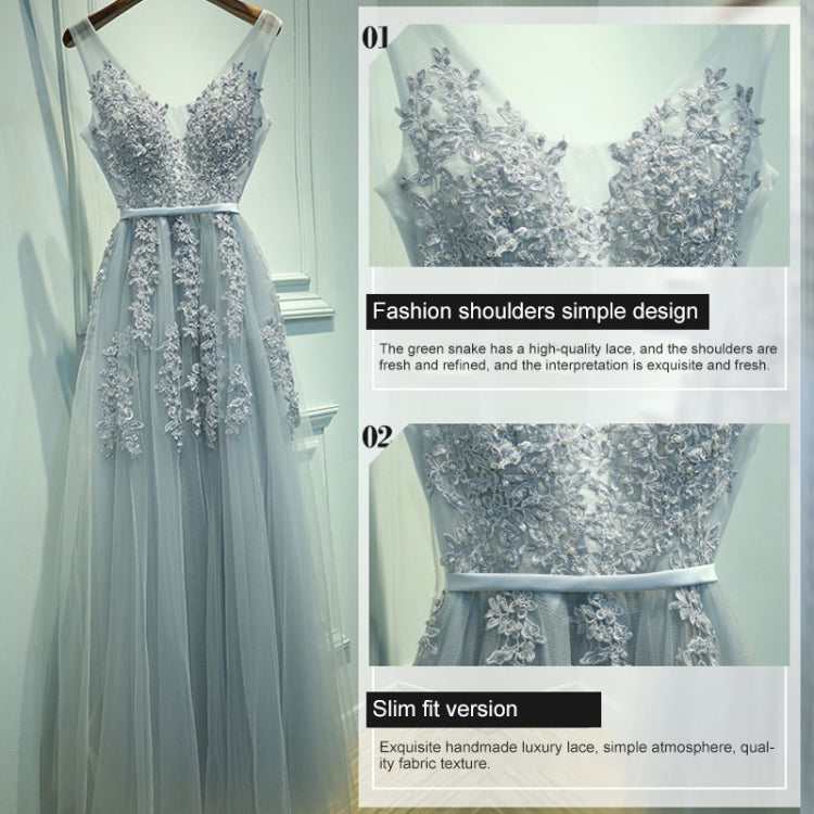 Sexy V-neck Evening Dress Robe Tulle Applique Evening Dresses, Size:XXL (White)