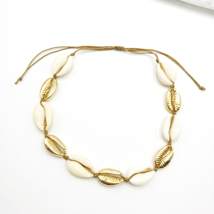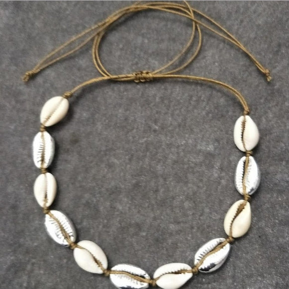Shell Charm Hand Chain Necklace Beige Cord Hand Jewelry Necklace, Design:Silver Necklace