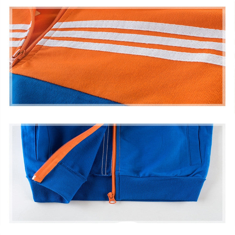 Spring and Autumn Boys Sportswear Set Striped Long Sleeve Zipper Hooded Top + Pants, Size:110cm(Blue and Orange)