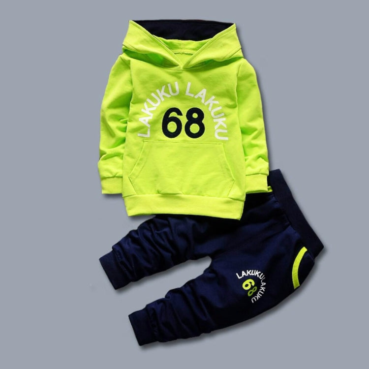 Spring Casual Children Letter Hooded Sweater Set, Kid Size:110cm(Green)