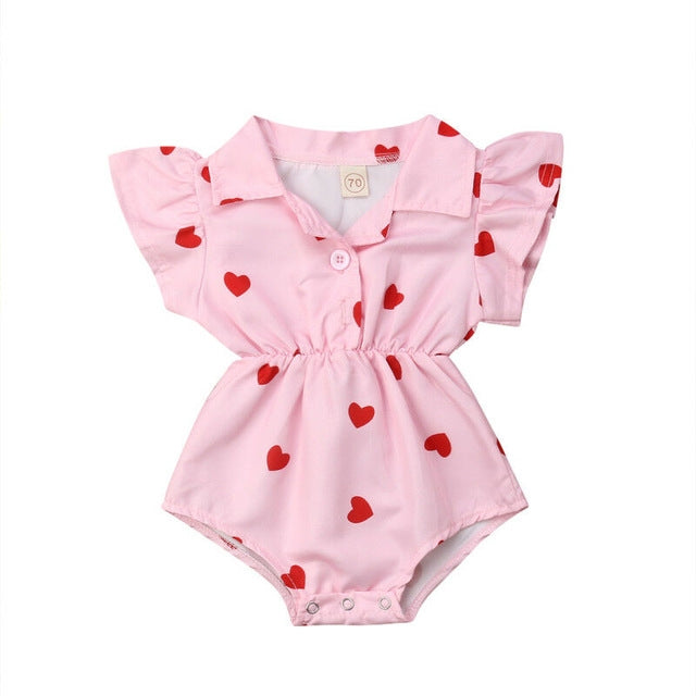 Summer Female Babies Stand-up Collar Short-sleeved Jumpsuit Romper, Kid Size: 100CM(Pink)