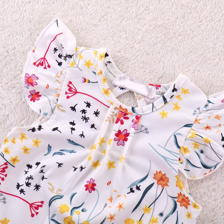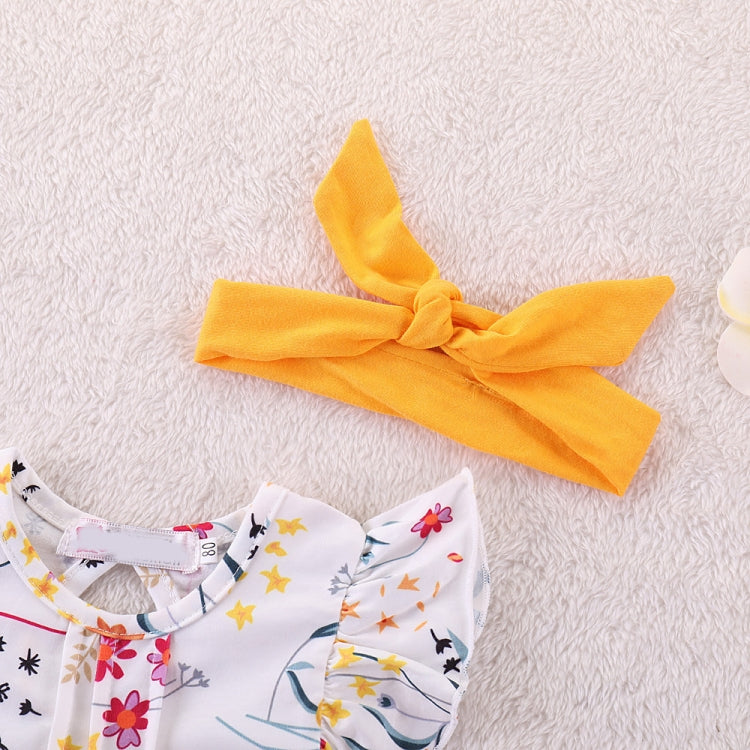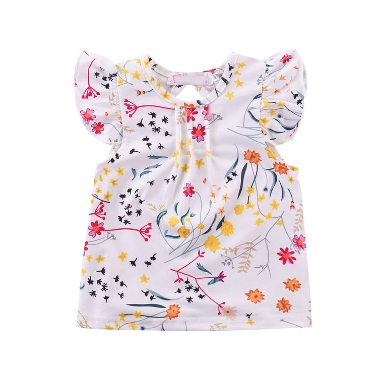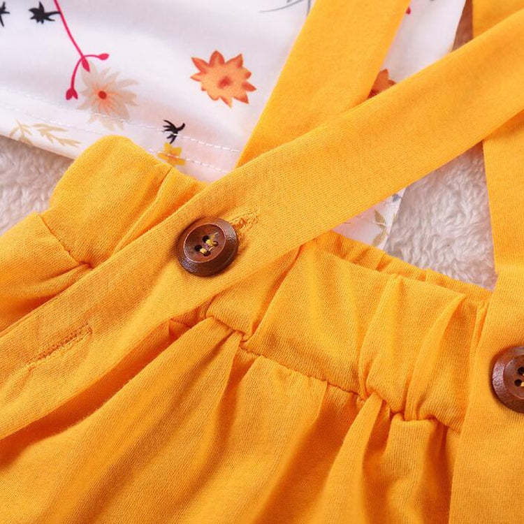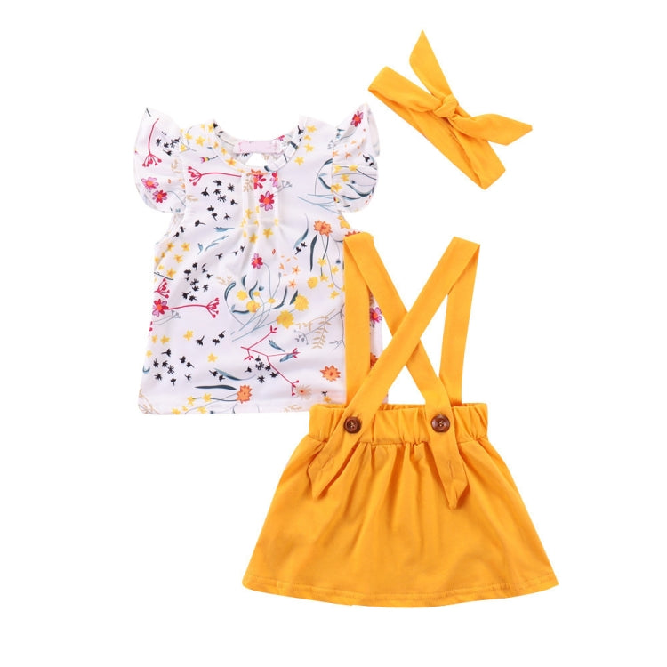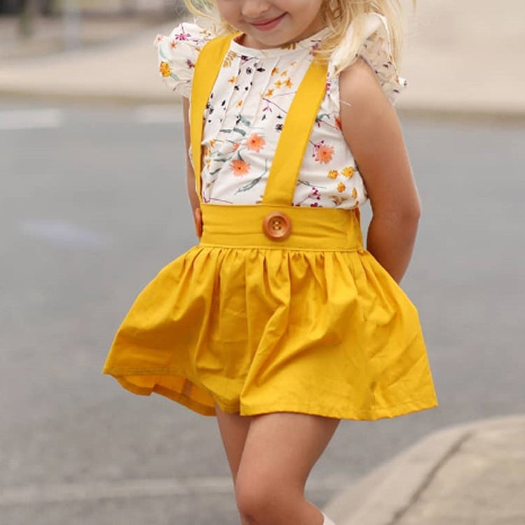 Summer Girls Sleeveless Floral T-Shirt + Sling Dress Set, Kid Size:120cm(Yellow)