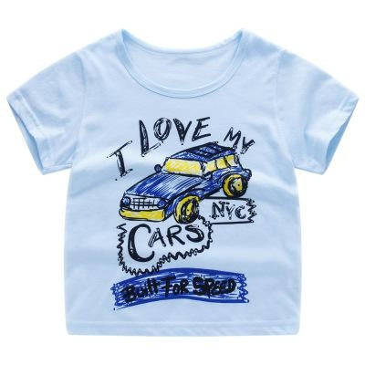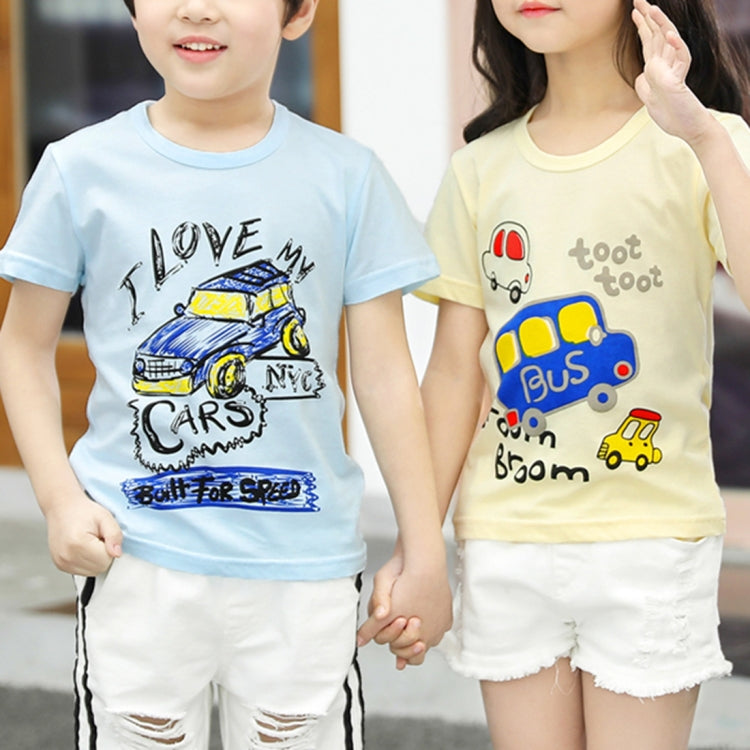 Summer Short Sleeve T Shirts Cartoon Print T-shirt Cotton Tops For Kids Clothing, Kid Size:100cm(Blue Car)