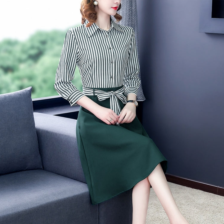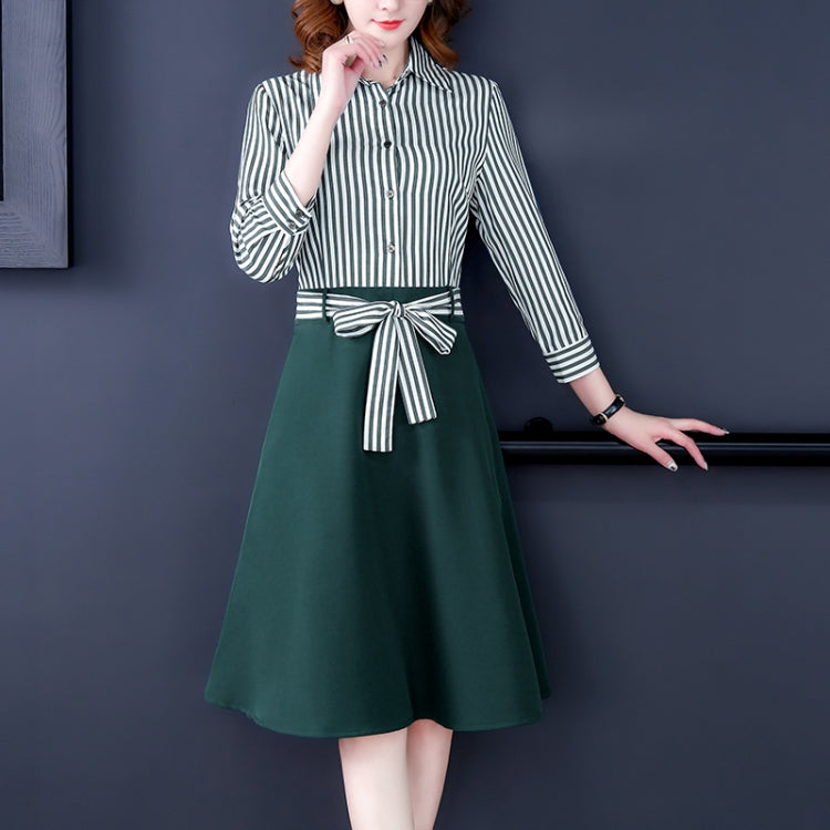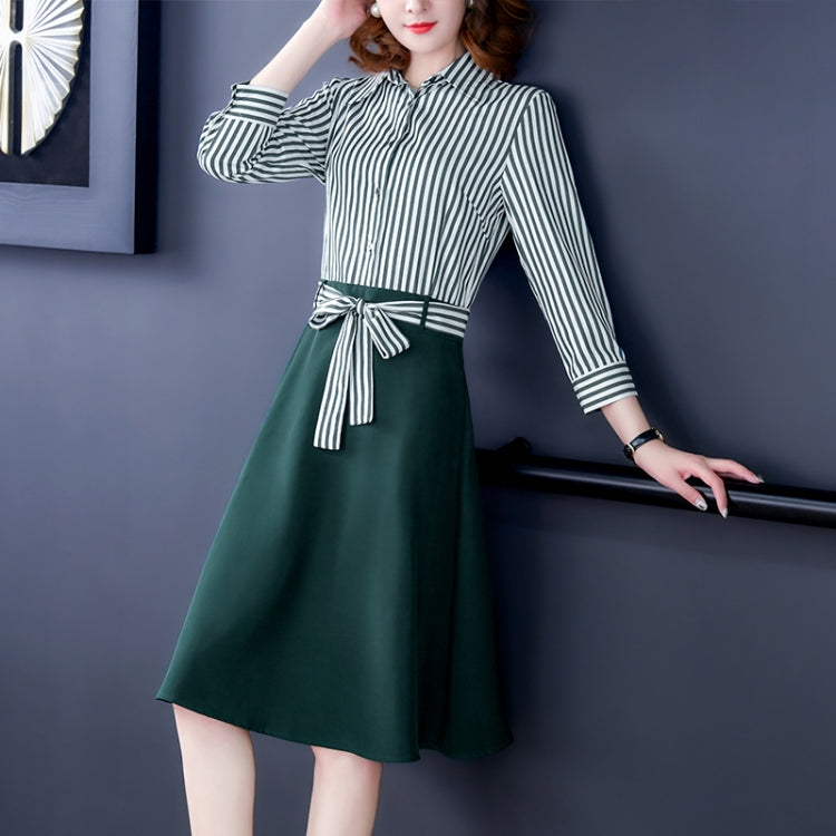 Waist Stitching Striped Shirt Dress, Size:S(Dark Green)