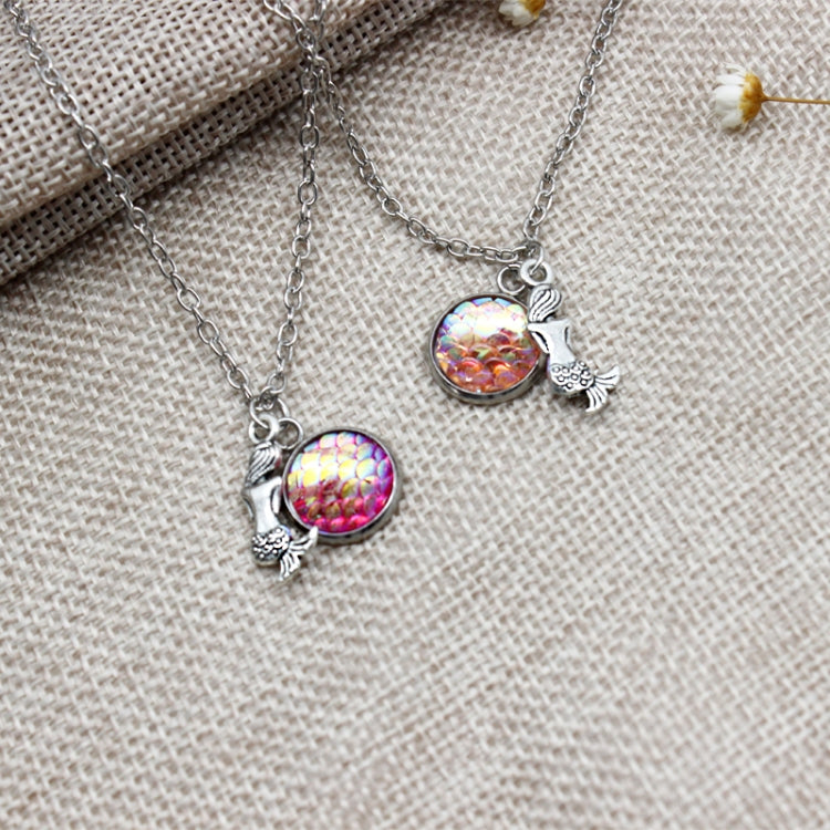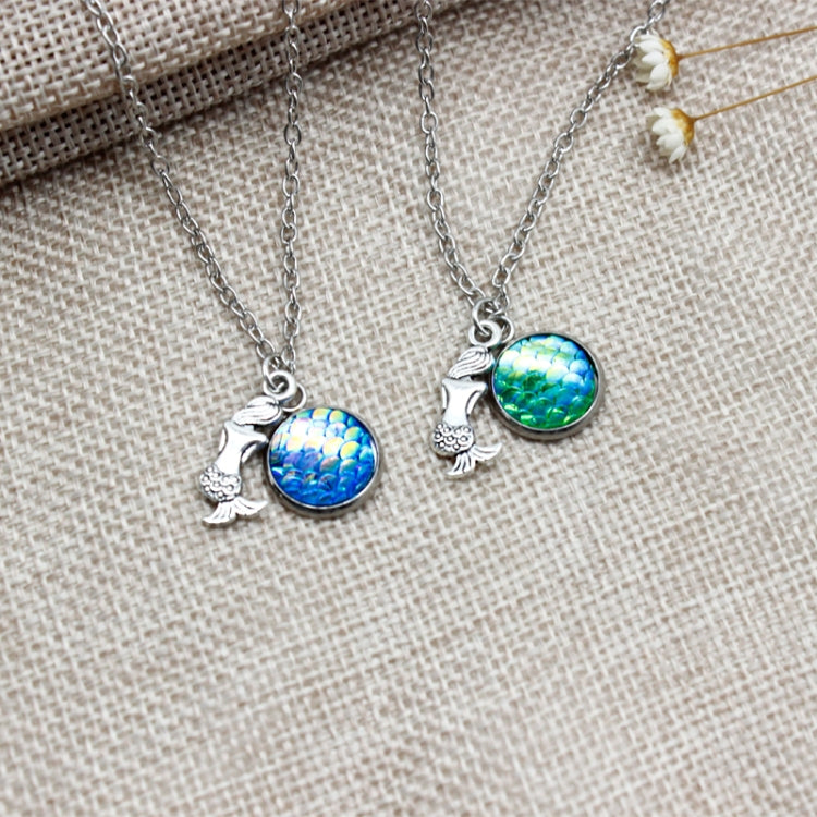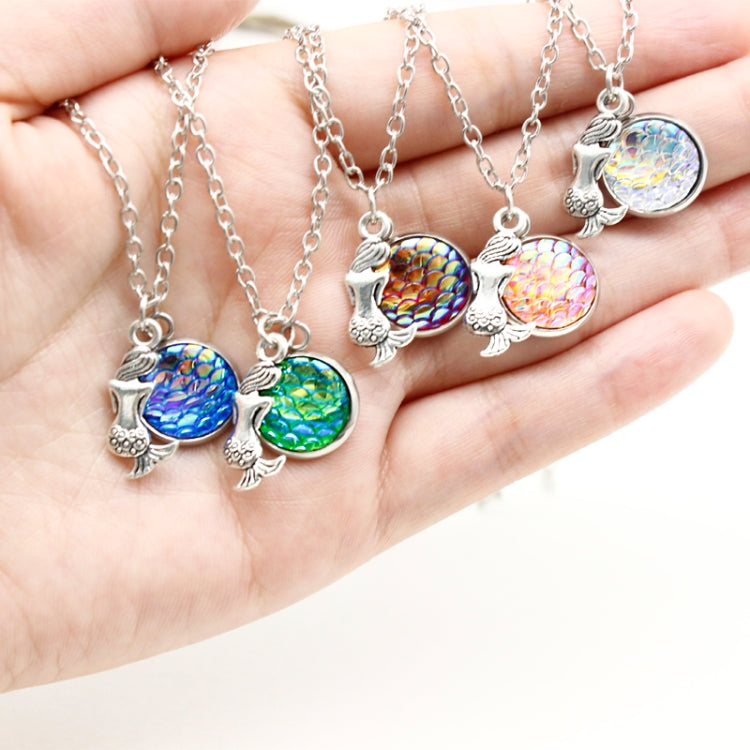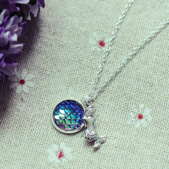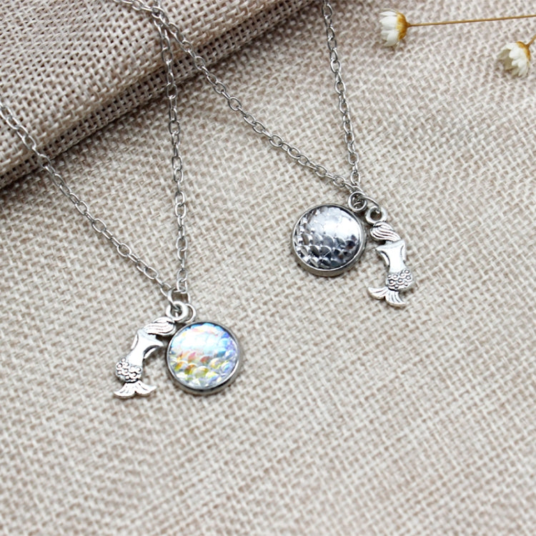 Women Shimmery Mermaid Scales Fish Time Gem Pendant Necklace(NL-11)