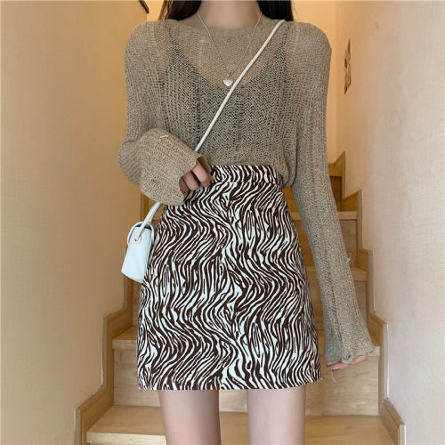 Zebra Pattern High Waist A-Shaped Skirt, Size: S(Khaki)