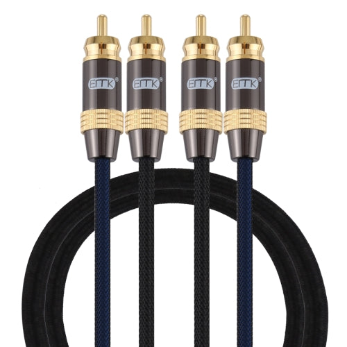 EMK 2 x RCA Male to 2 x RCA Male Gold Plated Connector Nylon Braid Coaxial Audio Cable for TV / Amplifier / Home Theater / DVD, Cable Length:1m(Black)