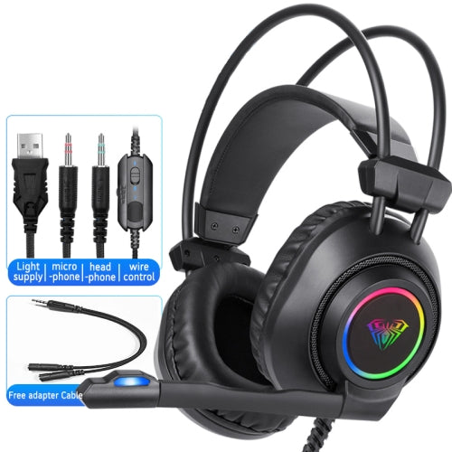 AULA S600 3.5mm + USB Port RGB Lighting Gaming Headset with Mic(Black)