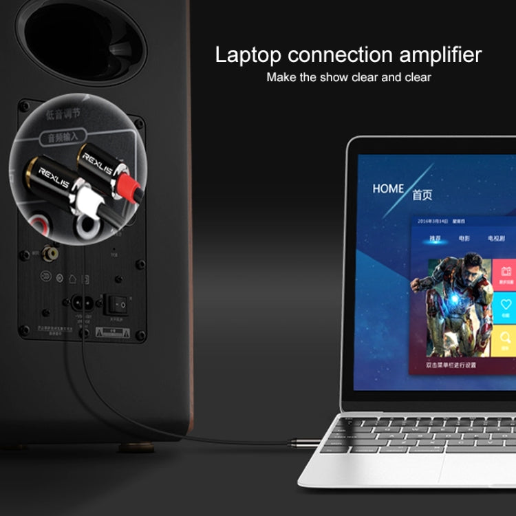 REXLIS 3635 3.5mm Male to Dual RCA Gold-plated Plug Black Cotton Braided Audio Cable for RCA Input Interface Active Speaker, Length: 1.8m