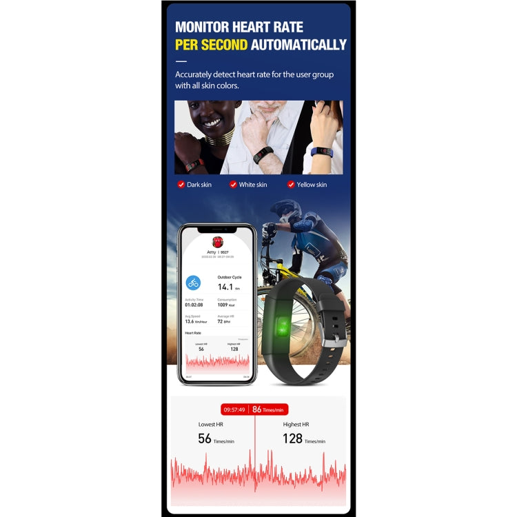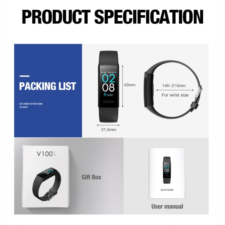 HAMTOD V100S 1.14 inch TFT IPS Screen IP68 Waterproof Smart Watch Smart Bracelet, Support Call Reminder / Heart Rate Monitoring / Sleep Monitoring(Black)