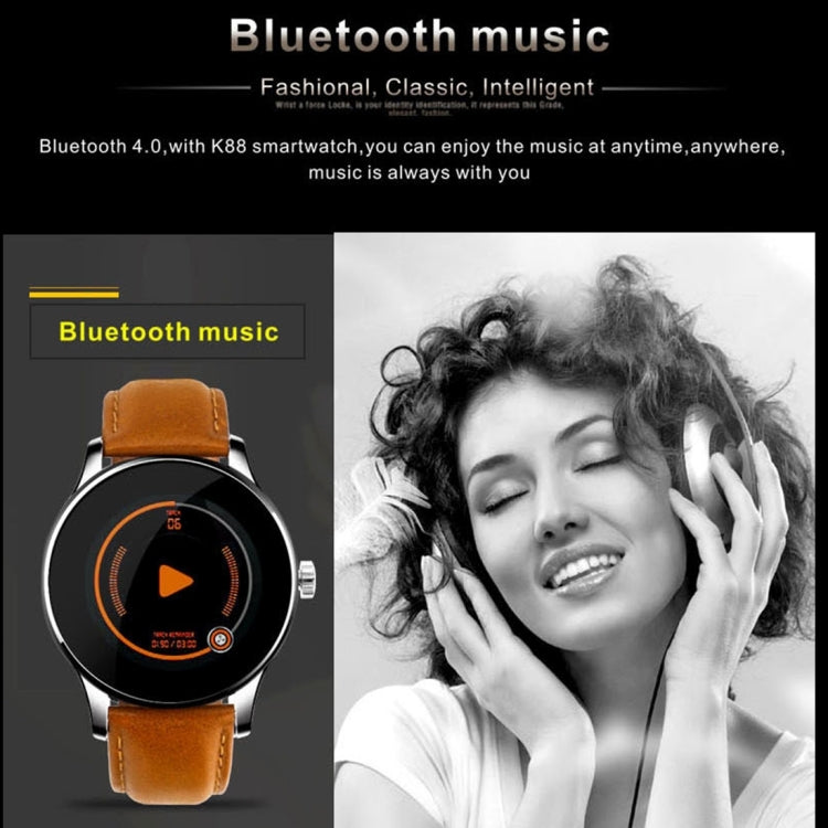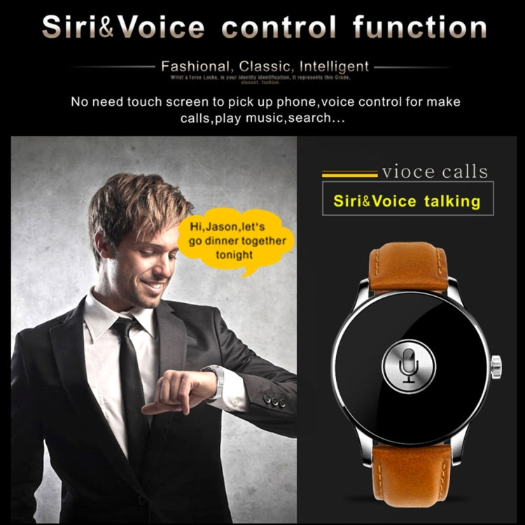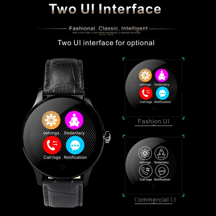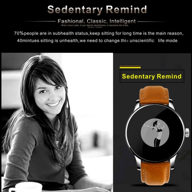 K88H 1.22 inch 2.5D Curved Screen Bluetooth 4.0 IP54 Waterproof Couples Style Leather Strap Smart Bracelet with Heart Rate Monitor & BT Call & Pedometer & Call Reminder & SMS / Twitter Alerts & Anti lost & Remote Camera Functions For Android 4.4 OS and IO