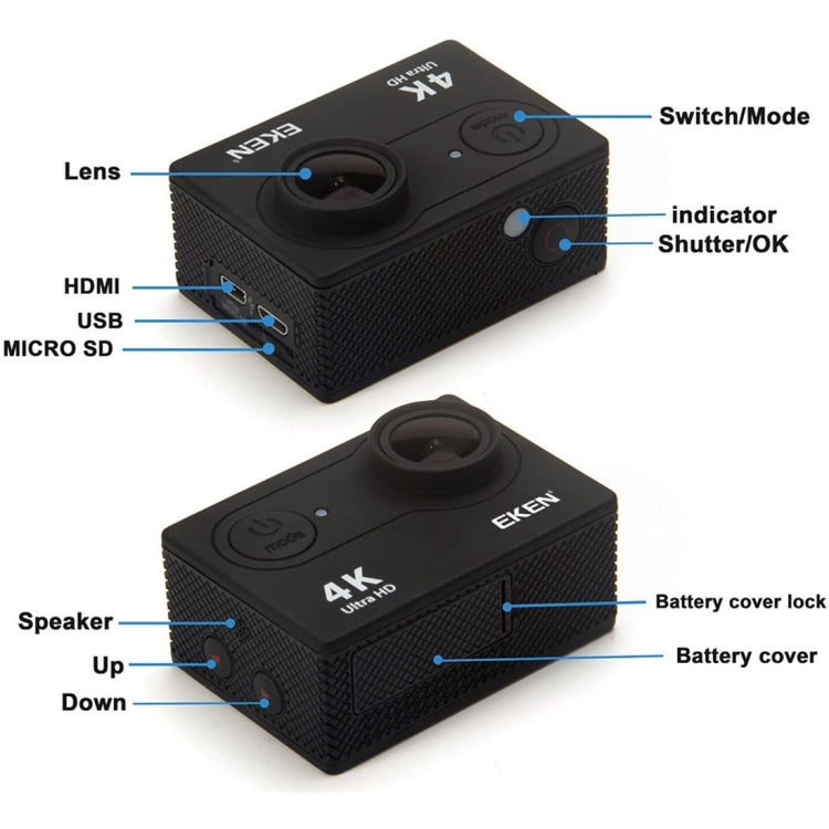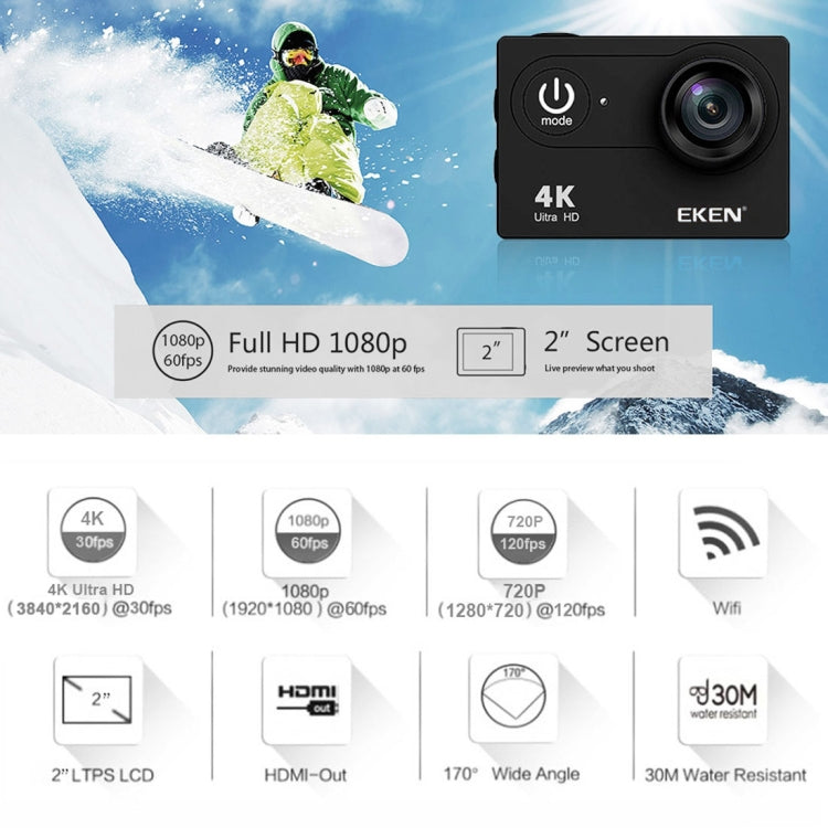EKEN H9R Ultra HD 4K WiFi Sport Camera with Remote Control & Waterproof Case, Sunplus SPCA6350, 2.0 inch LCD Screen, 170 Degree Wide Angle 6G+1IR Lens(Black)