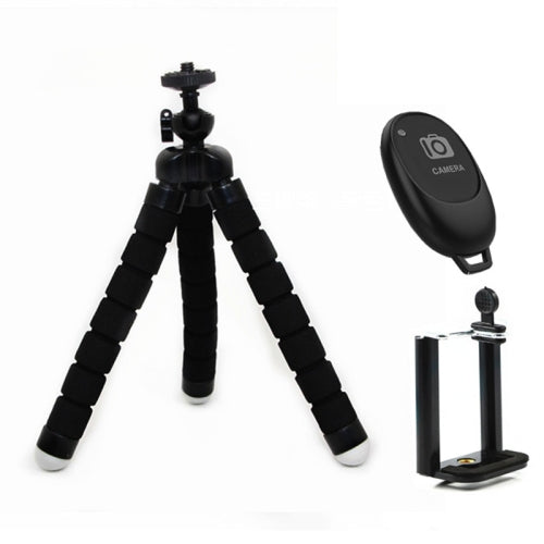 Mini Octopus Flexible Foam Tripod Holder with Phone Clamp & Remote Control(Black)