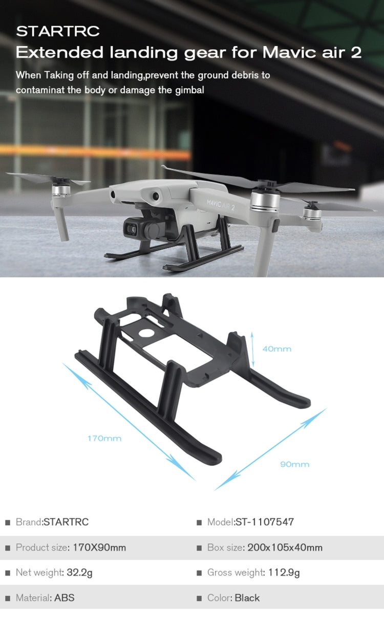 STARTRC for DJI Mavic Air 2 Portable Anti-fall Anti-dirt Heightened Landing Gear Training Rack (Black)