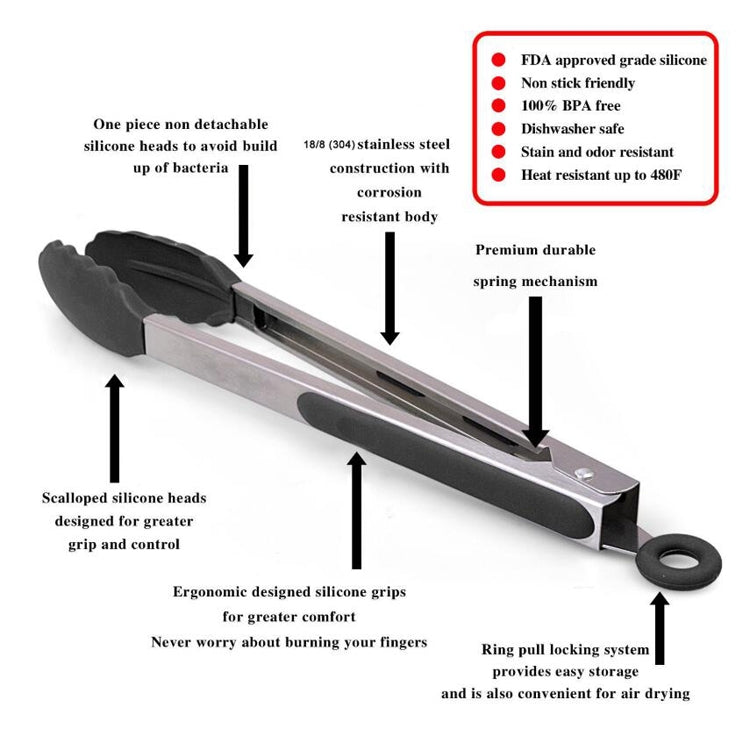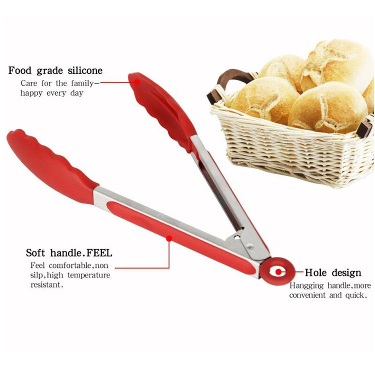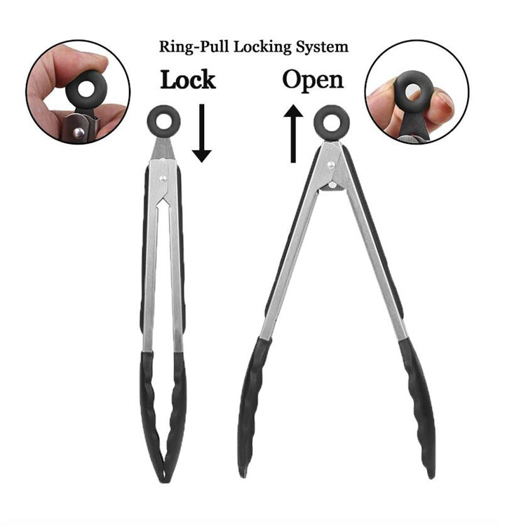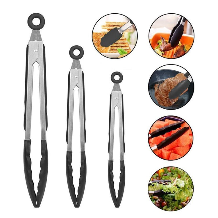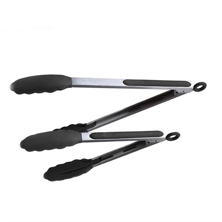 2 in 1 Stainless Steel Bread Barbecue Food Clip Silicone Baking Tools Set (Black)