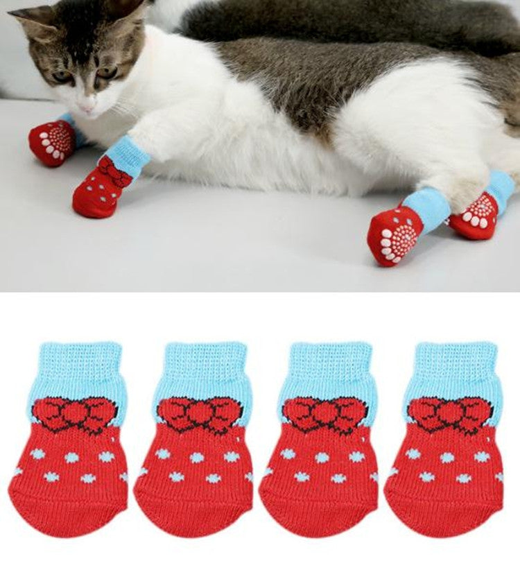 2 Pairs Pet Dog Puppy Cat Shoes Slippers Non-Slip Socks Pet Cute Indoor for Small Dogs Cats Snow Boots Socks, Size:L(Red)