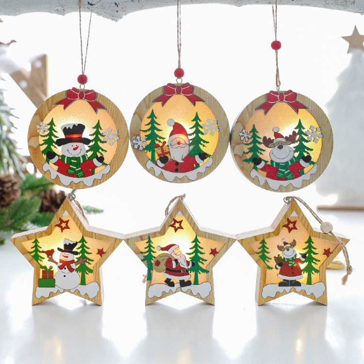 2 PCS Christmas Decoration Wooden Luminous Pendant Christmas Tree Decoration Accessories, Style:Round(Snowman)