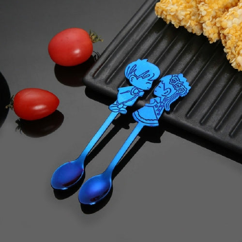 2 Sets Stainless Steel Tableware Creative Cartoon Couple Spoon Hanging Cup Spoon Coffee Stirring Spoon, Color:Blue