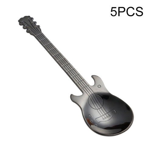 5 PCS Creative Stainless Steel Guitar Shape Coffee Spoon Mixing Spoon(Black)